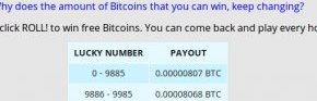 Заработок Bitcoin-ов происходит как я уже говорил, при помощи ввода капчи каждый час во вкладке Free BTC. Заработок идет случайным образом. К примеру если вам выпадает число менее 9885, то вы получаете ~0.00000807 BTC.